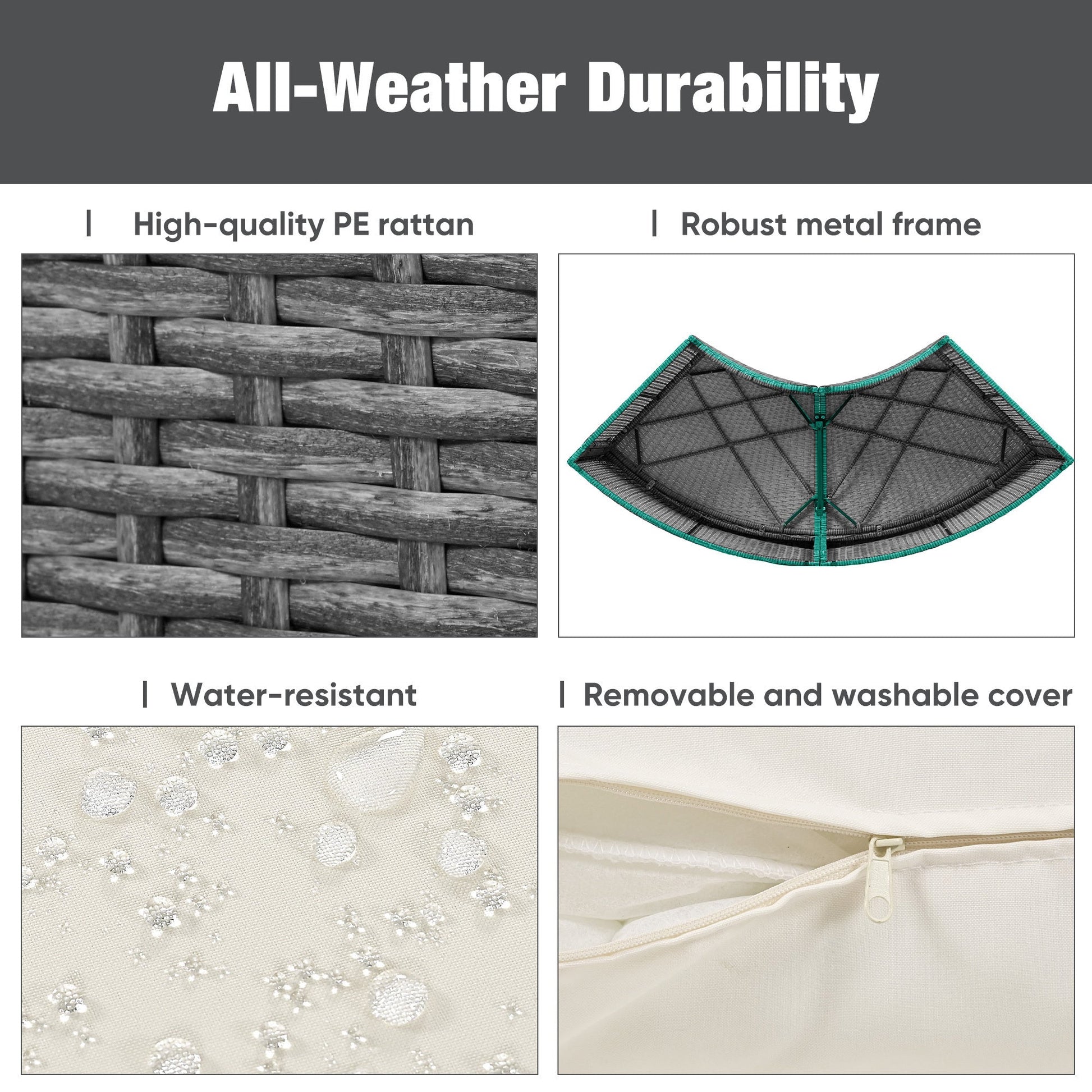 Crafted with high-quality PE rattan, this 5-piece outdoor sectional sofa set is designed to withstand all weather conditions, ensuring long-lasting beauty and functionality. The robust metal frame provides a strong foundation, making it perfect for any outdoor gathering or relaxation space.
